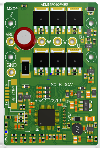 進(jìn)芯電子電動(dòng)工具電機(jī)控制方案是基于16位定點(diǎn)DSP芯片ADM16F03A開發(fā)設(shè)計(jì)的,芯片主頻為100MHz,搭載延時(shí)濾波和運(yùn)算加速單元,內(nèi)置4K x 16 位 SARAM、(256+256+32)x16位DARAM、32Kx16位Flash,支持8路PWM輸出,SCI等豐富外設(shè)接口,內(nèi)部集成了6 NMOS Pre-Driver、運(yùn)算放大器、PGA、比較器、高速ADC等模塊,具有高整合度、高抗干擾、高可靠性的特點(diǎn),非常適用于BLDC/PMSM電機(jī)方波、FOC 驅(qū)動(dòng)控制。