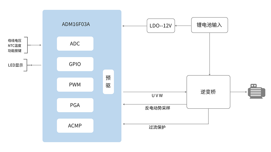 高度集成化方案,內(nèi)置5V LDO及6NMOS預驅(qū),節(jié)省板型空間及成本;多檔水壓調(diào)節(jié),續(xù)航持久。