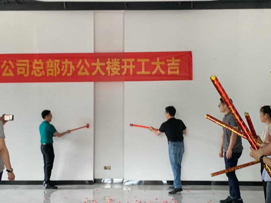 金錘砸墻萬(wàn)事吉,財(cái)源旺盛達(dá)八方。進(jìn)芯電子董事長(zhǎng)黃嵩人、副總經(jīng)理易峰共同舉錘,敲響了開工第一錘,寓意著總部辦公大樓裝修工程順利啟動(dòng)。
